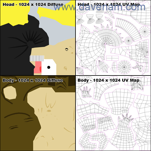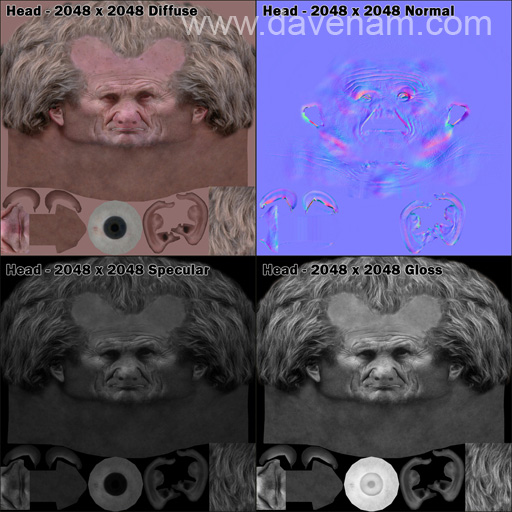 - 2048 x 2048 Diffuse, Normal, Specular, Gloss